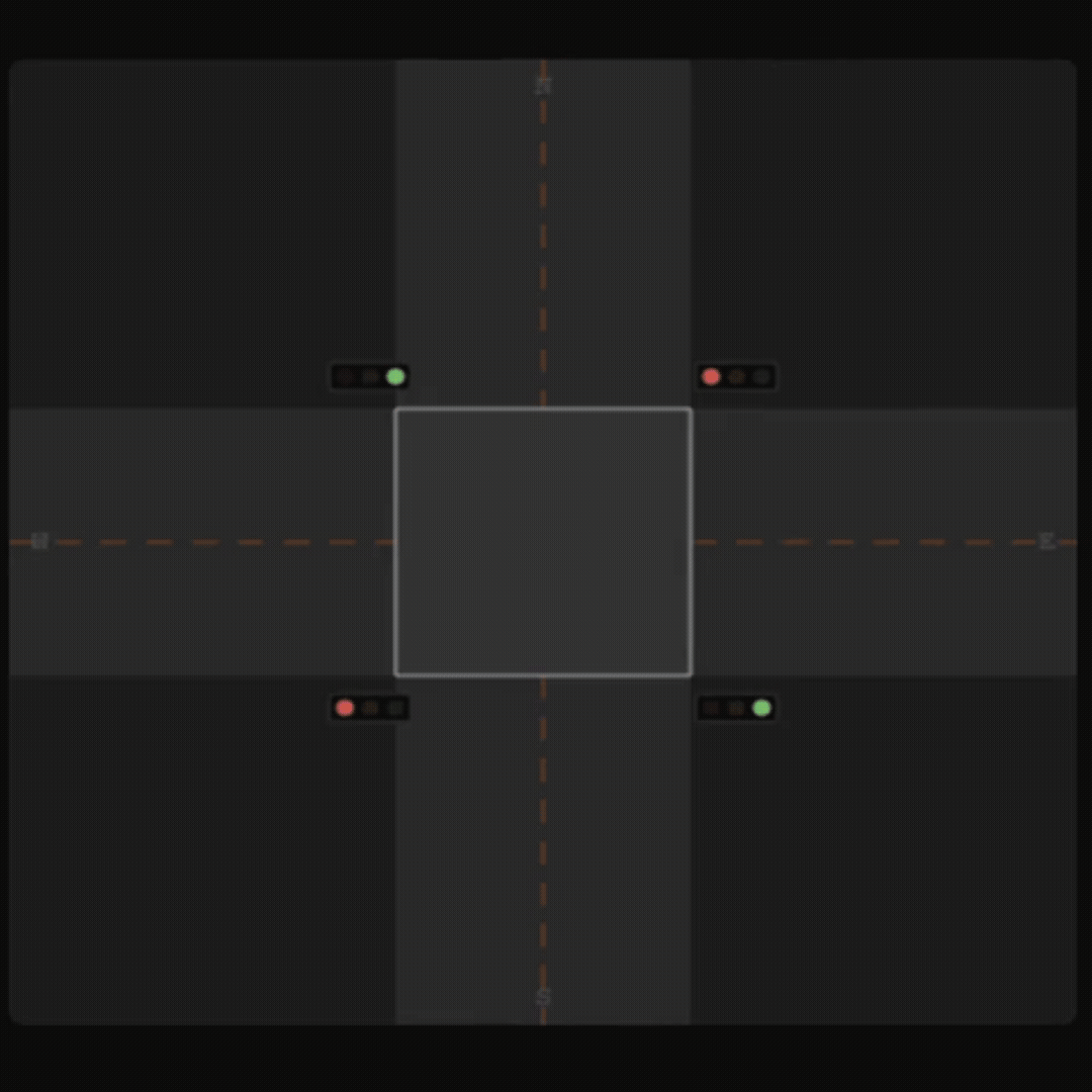 Concurrent four-way intersection simulation — 16 car threads navigate with zero deadlock using 12 POSIX semaphores.